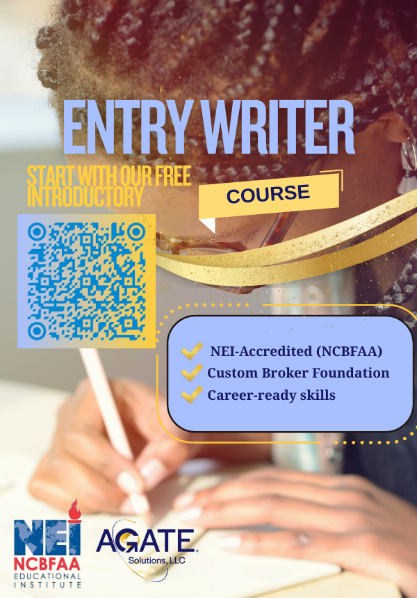 Prepare to pass the Licensed Customs Broker Exam by joining Agate Solutions’ expert-led study group. This comprehensive course is designed to ensure your success with a focused curriculum covering essential exam topics, including the Harmonized Tariff Schedule (HTS), customs regulations, import entry processes, valuation, free trade agreements, and more.